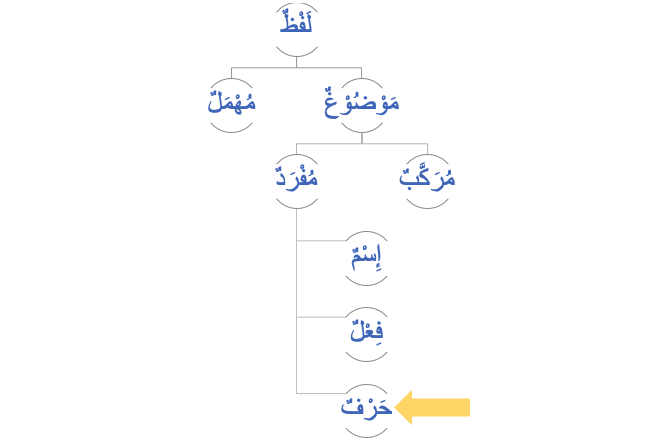A حَرْفٌ [Harf] is a word that needs another word with it in order to make sense.